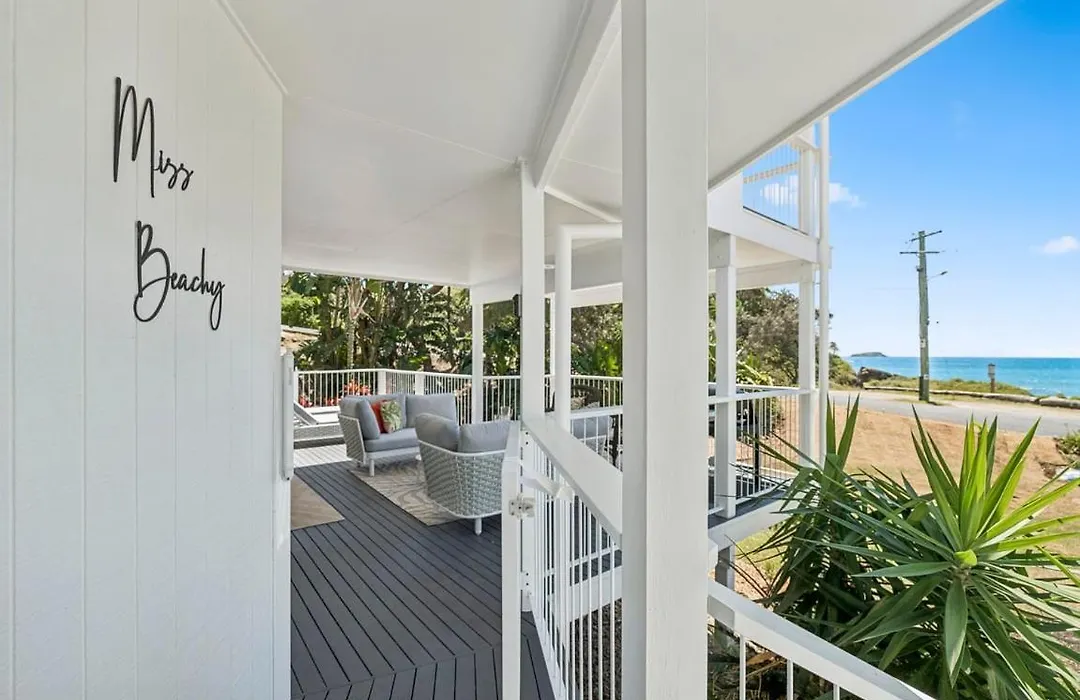 Beliggende 10 minutters køretur til Korora Lookout, har Miss Beachy - Stunning Beachfront Home, Pets Ok udsigt over havet. Denne indkvartering tilbyder adgang til en terrasse.